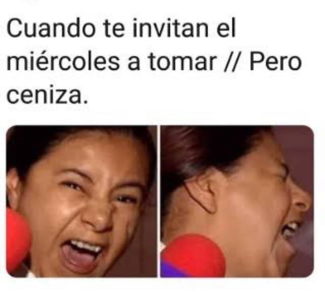 La joven Martha la han invitado a tomar el día miercoles con motivo de una gran celebración. Ella estaba muy feliz ya qué tenía meses sin salir. Ella se dispuso a agarrar sus mejores prendas y salir a divertirse ese miercoles en la noche sin embargo toda felicidad terminó cuando la joven recibé la noticia de qué irian pero a tomar ceniza a la iglesia con motivo del miercoles de ceniza el primer día de la cuaresma jaja.